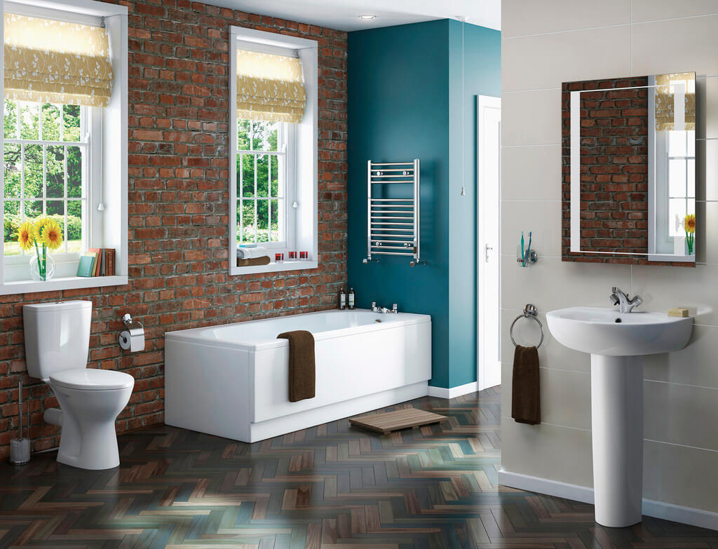 Если цветные – подберите отделочный материал в схожем оттенке, обратите внимание на текстурный и 3D вариант. Если мебель и сантехника коричневые в ванной, выбирайте серую плитку или имитирующую мрамор, травертин