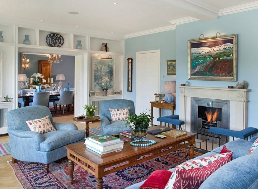 Используя голубой цвет в интерьере, стоит позаботиться о ярких акцентах, в противном случае можно получить »холодное» помещение