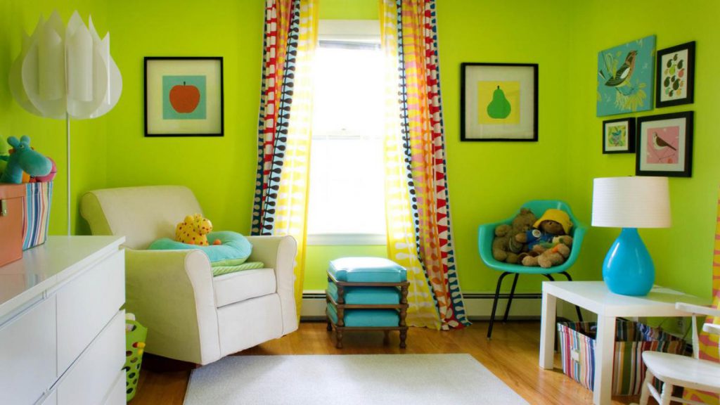 Не часто случается встретить стены, полностью в ярко-зеленой гамме. В небольших комнатах такое цветовое решение «съест» часто пространства, к тому же комната будет выглядеть мрачно и угрюмо. Лучше попробовать светло-зеленую гамму.