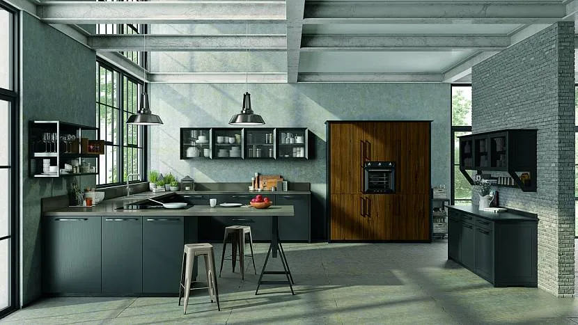 Хотя кухонный гарнитур с бетонными фасадами вписывается в ограниченное число стилей, выбрать подходящие отделочные материалы достаточно сложно, так как надо учитывать не только цвет, но и текстуру.