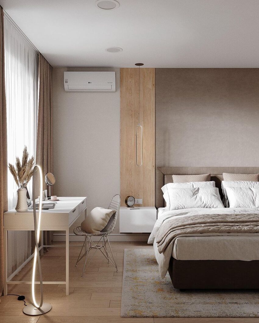 Данный оттенок поможет разбавить однотонность бежевой палитры, но при этом оставит комнате характерную сдержанность и минимализм.