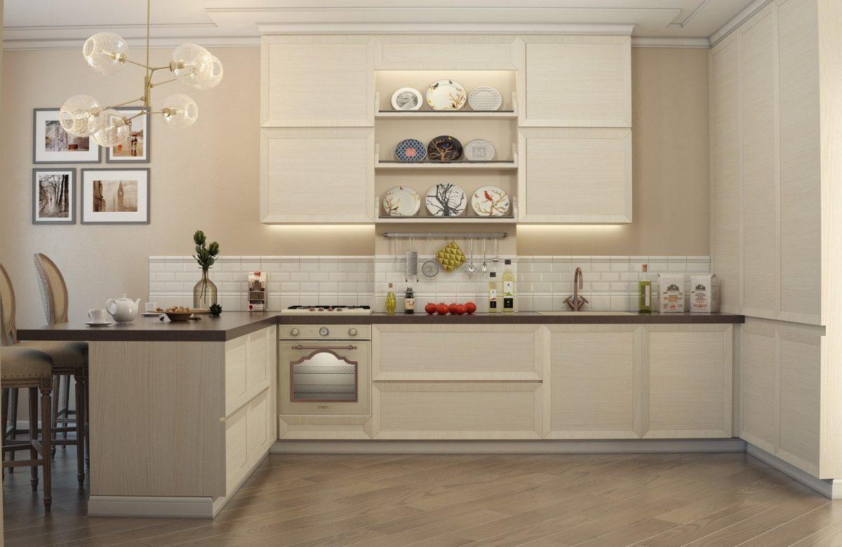 Оформление кухни в бежевых тонах позволит создать элегантные интерьеры в разных стилях. Цвет подходит как в качестве фона для акцентных вещей, так и для интерьера, построенного на игре текстур и сближённых оттенков.