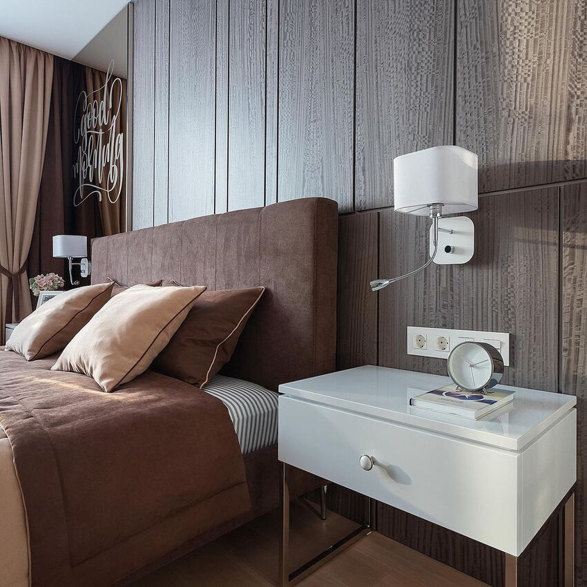 В небольших комнатах основной должна быть светлая палитра, а темный кофе или шоколад — лишь для выделения отдельных деталей. В просторной, наоборот, стены могут быть темными, а мебель и декор — песчаными.
