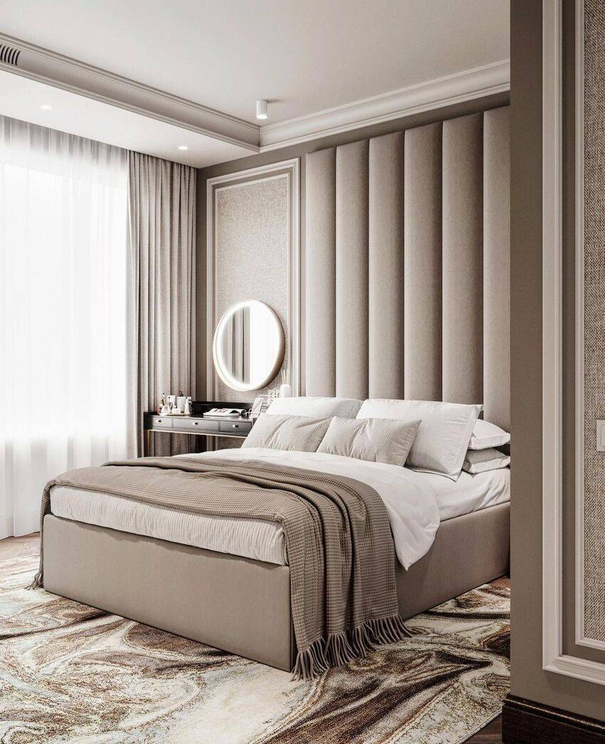 Бежевая мебель становится составной частью монохромного дизайна, который будет уместно смотреться в интерьере спальни при комбинировании различных оттенков одной цветовой палитры.