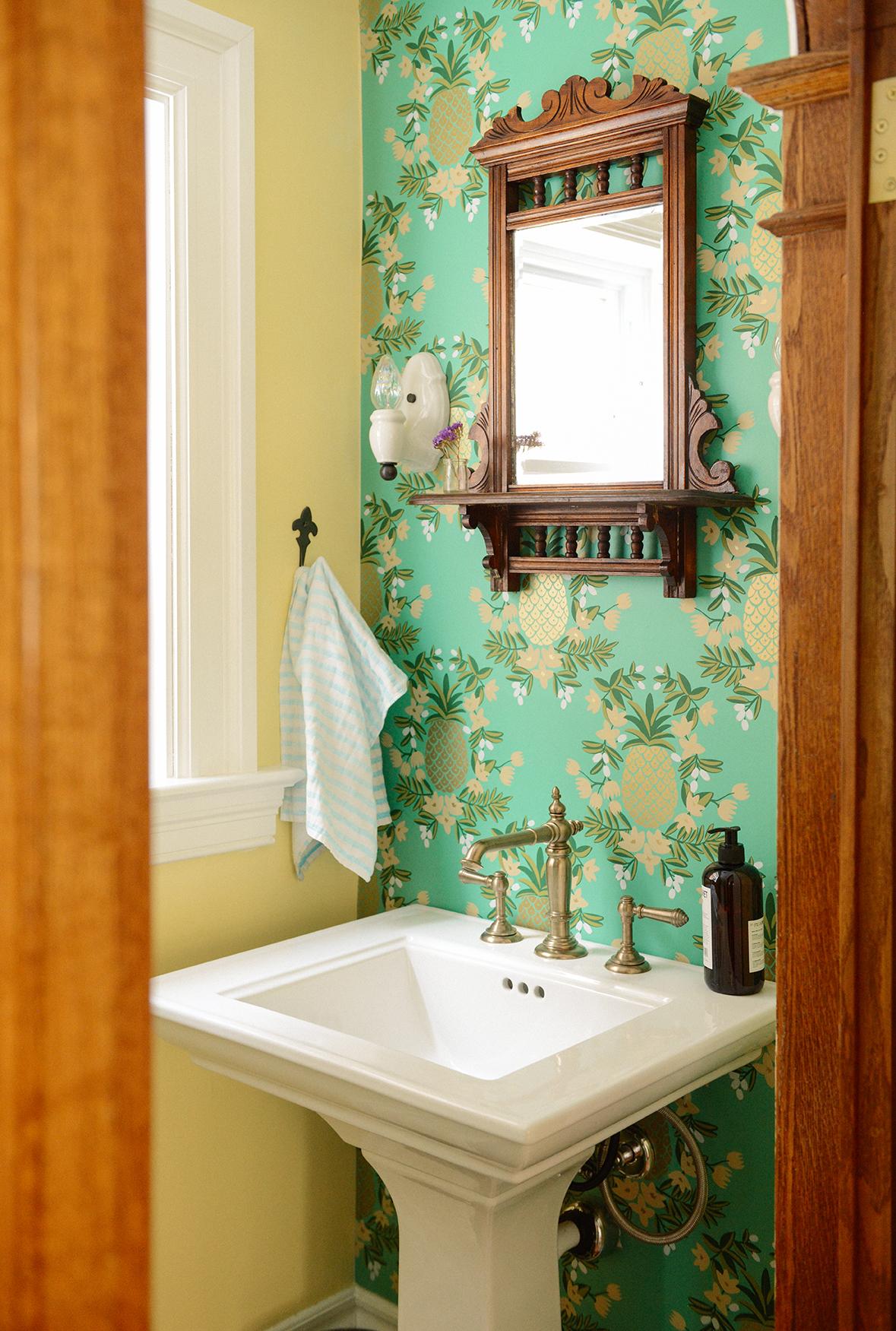 Один из лучших вариантов использования бирюзового цвета в интерьере – это оформление ванной комнаты. Хотя обои в таких помещениях используются реже других материалов, высококачественные покрытия (к примеру, на виниловой или флизелиновой основе) не только защитят стены, но и украсят интерьер.