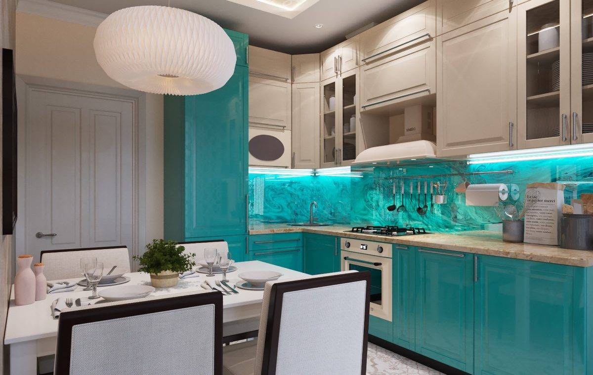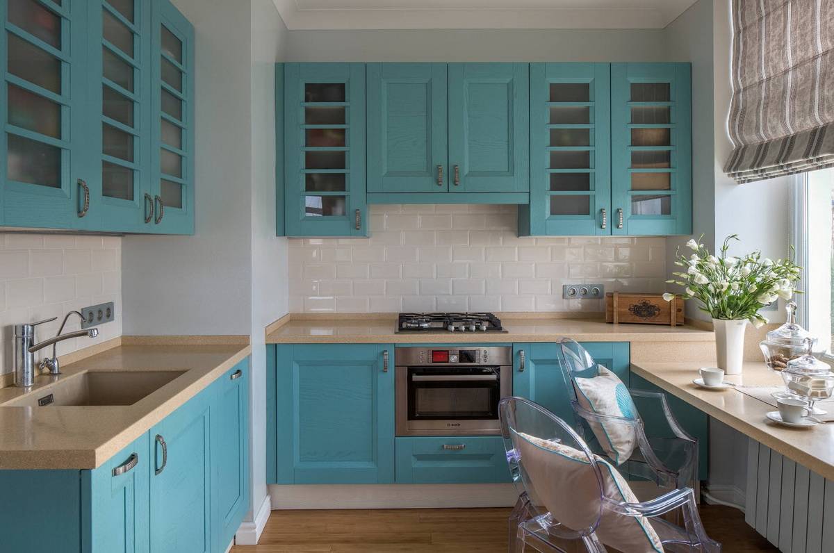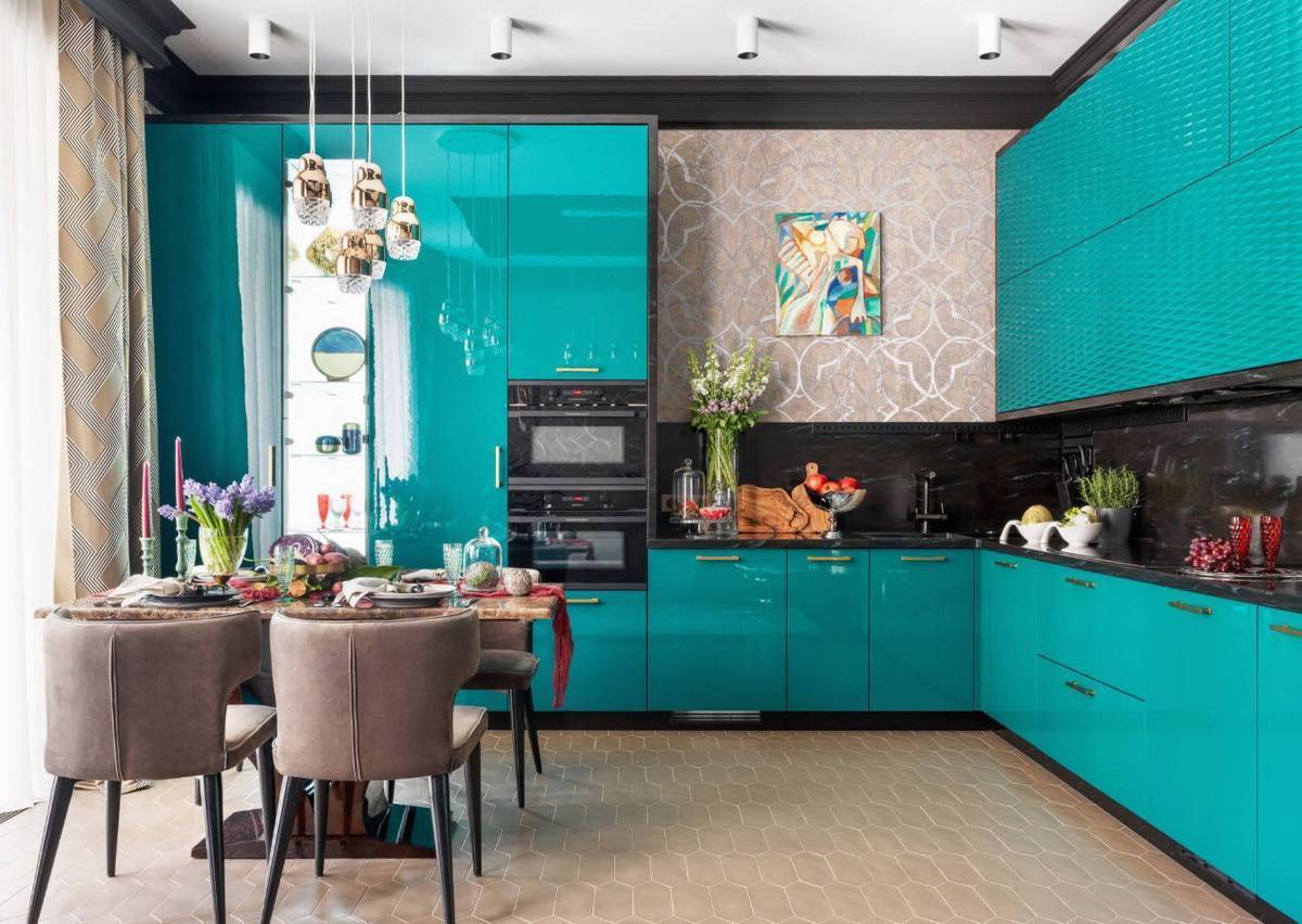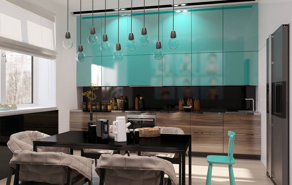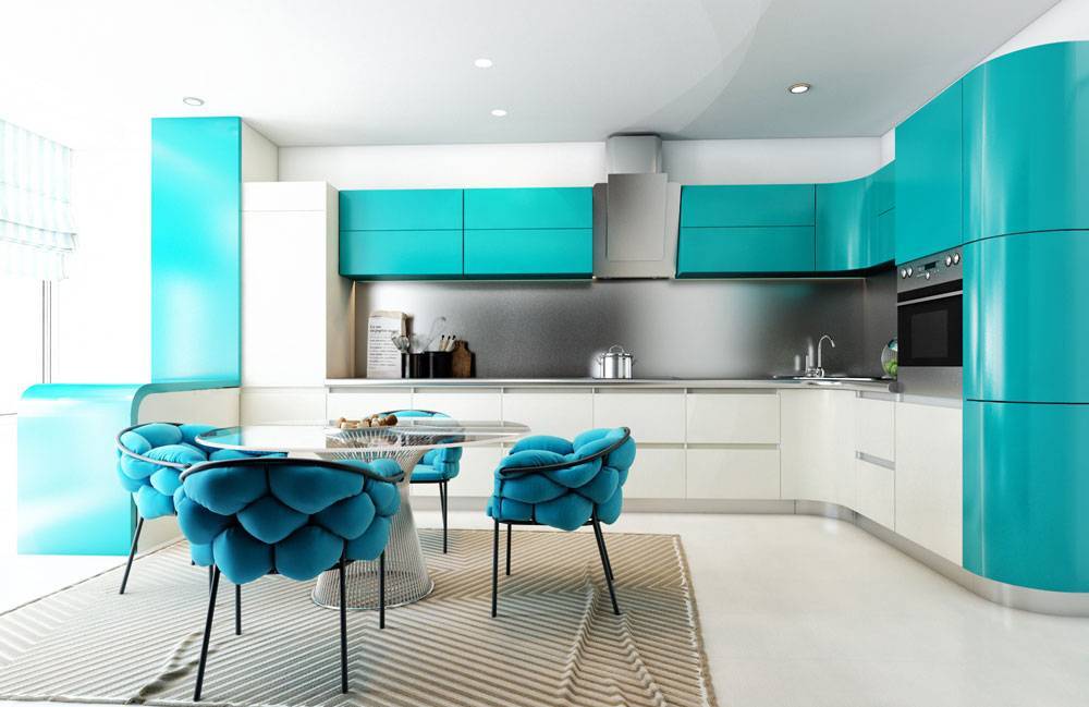Бирюзовый цвет будет гармоничным решением для вашей кухни, если грамотно подобрать цвета-компаньоны.