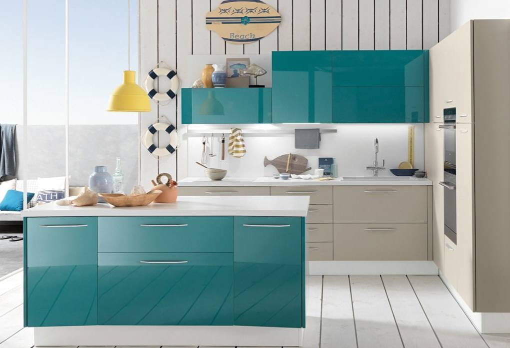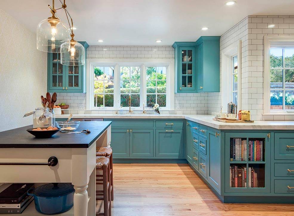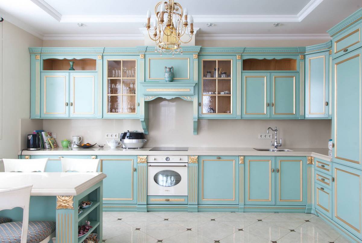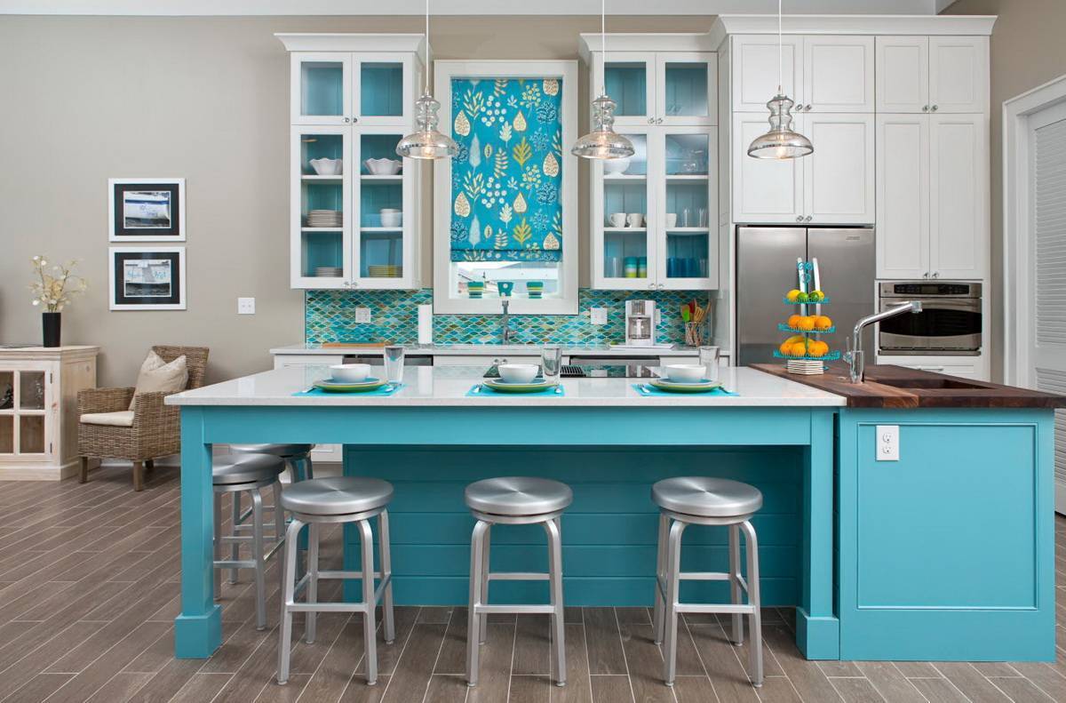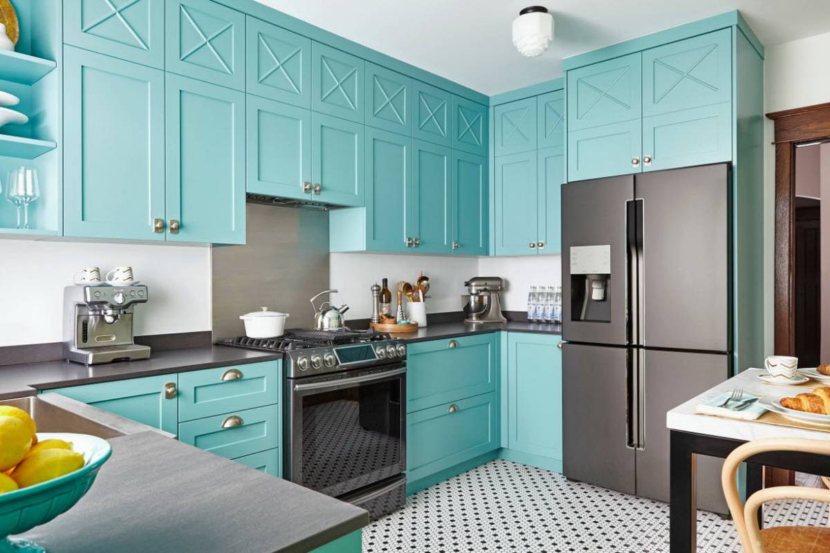 Бирюзовый цвет будет гармоничным решением для вашей кухни, если грамотно подобрать цвета-компаньоны.