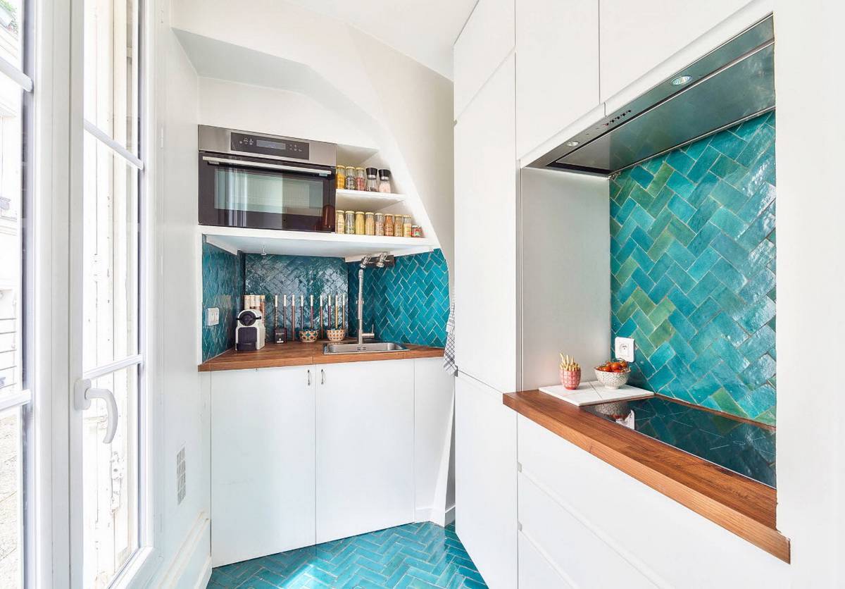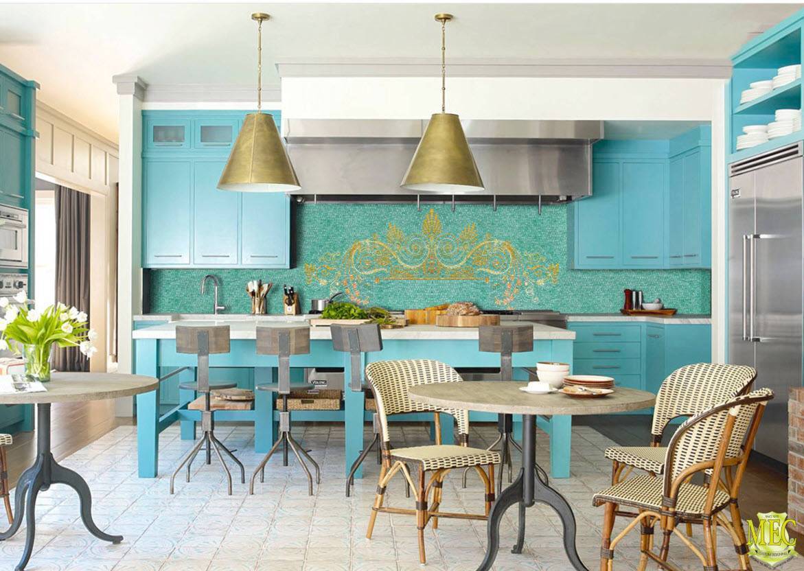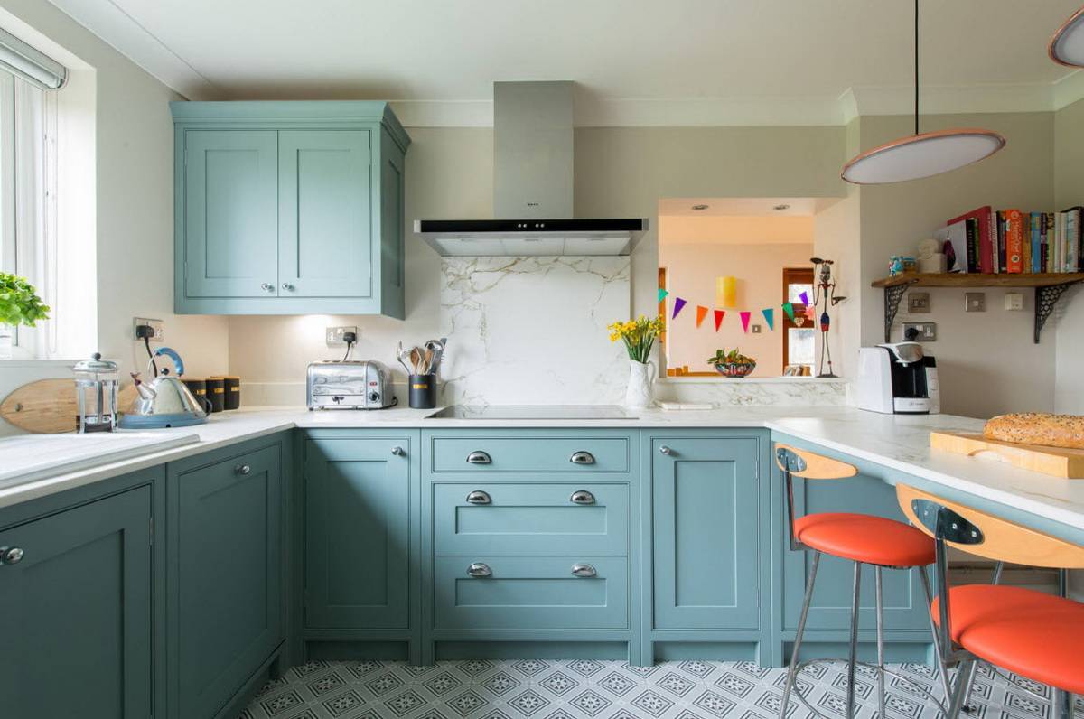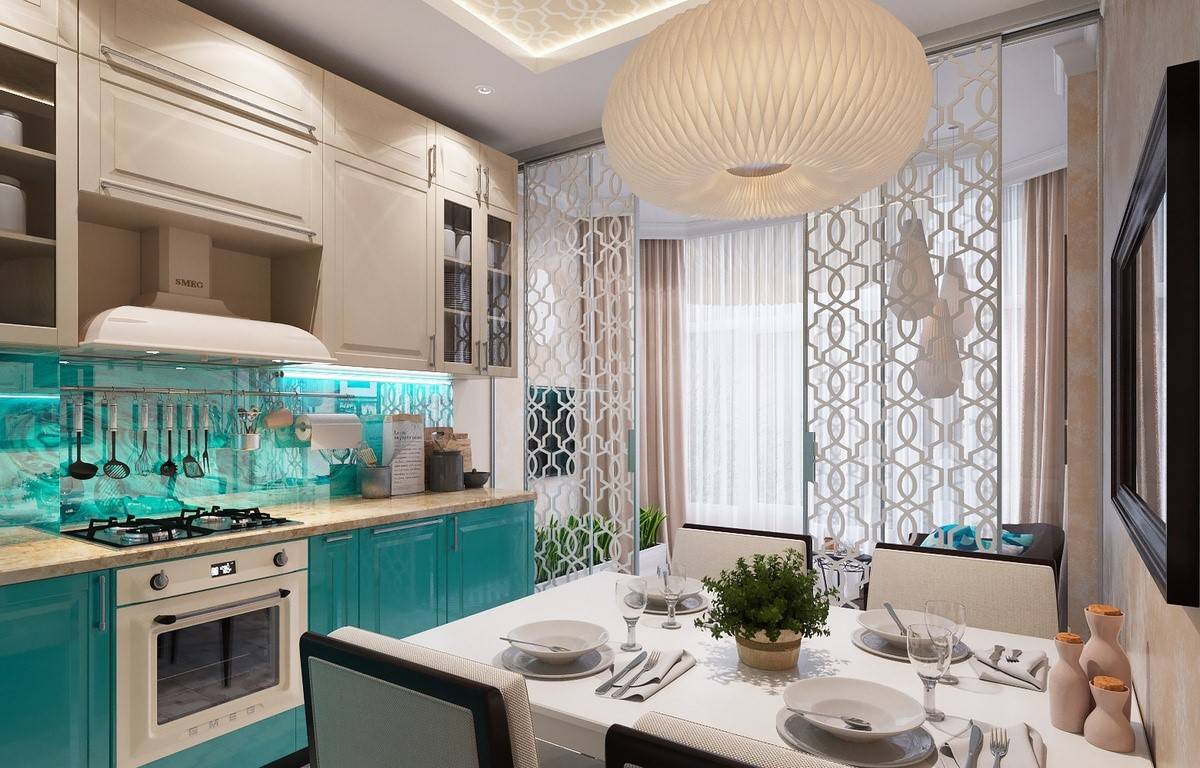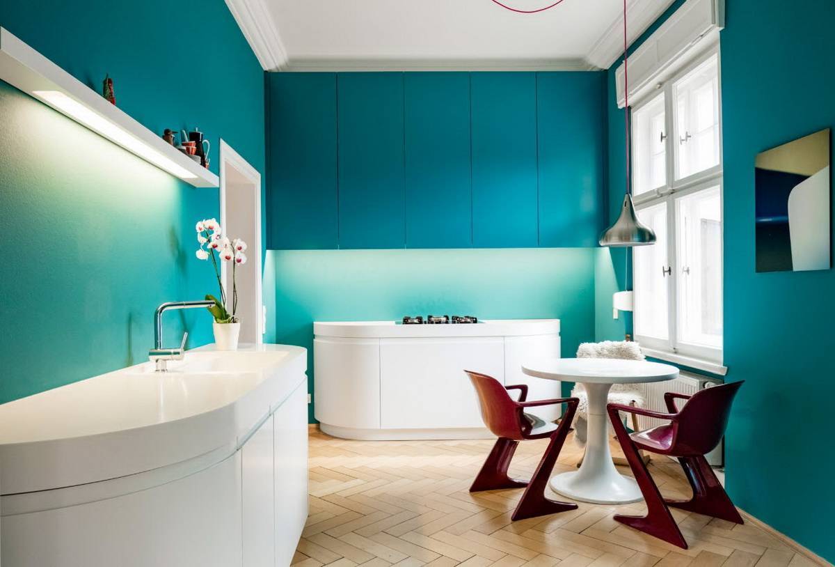 Бирюзовый цвет будет гармоничным решением для вашей кухни, если грамотно подобрать цвета-компаньоны.