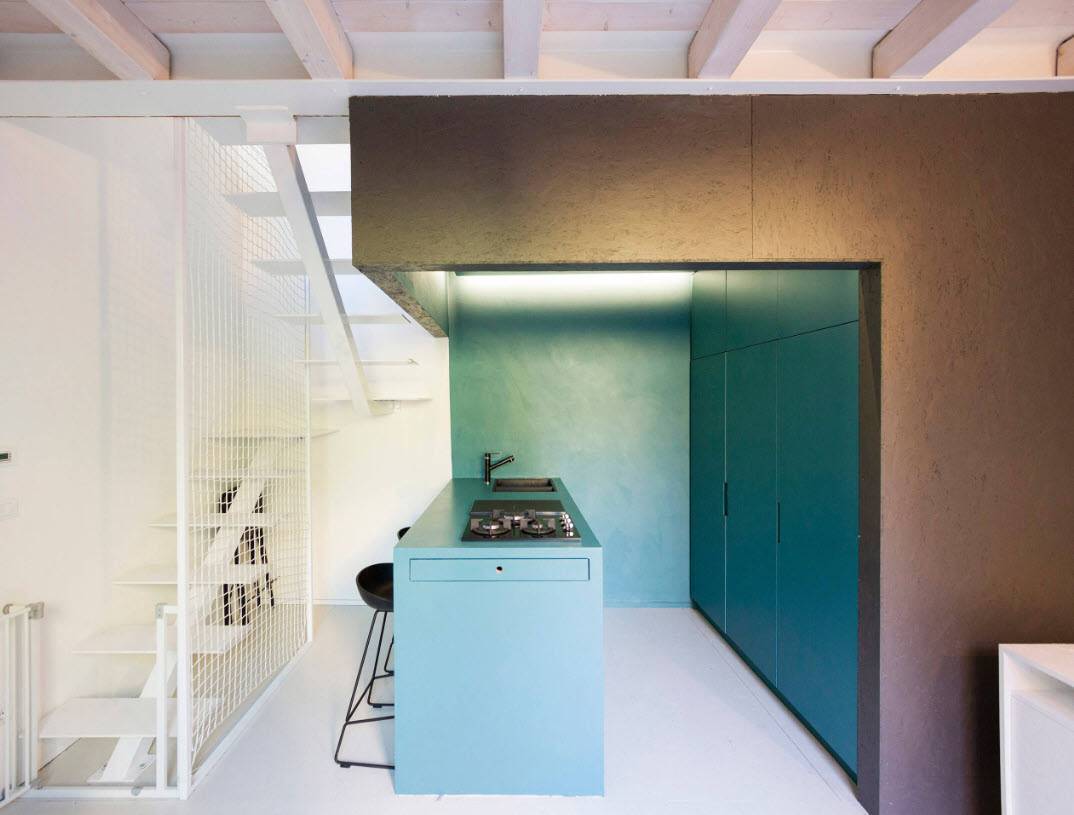 Светло-бежевый с бирюзовым в интерьере квартиры-студииИсточник stroyert.ru
