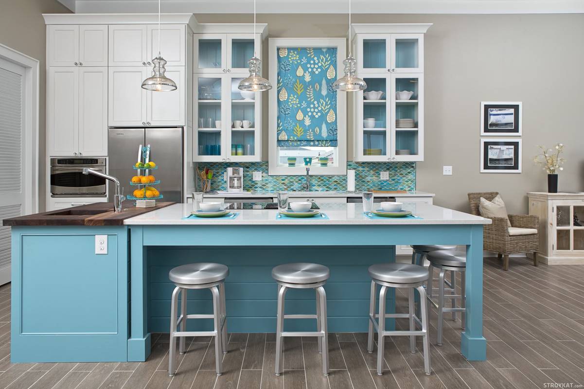 Голубая кухня в интерьере выглядит по-разному не только из-за основного оттенка, но и дополнительных. Далее узнаем с чем сочетать голубой цвет, чтобы получить идеальную картинку.