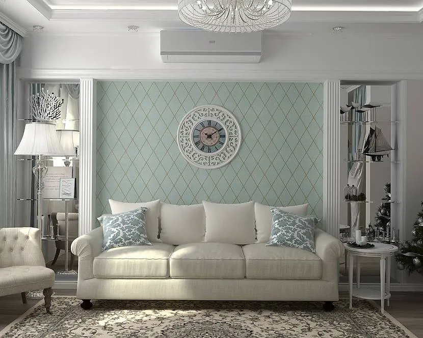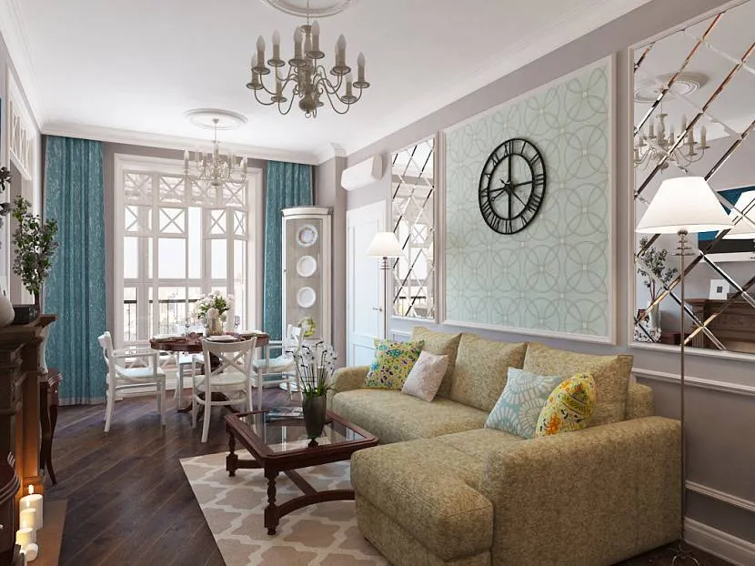 Мебель используется ограниченно, за исключением красивых настенных часов в гостиной в стиле барокко. Такой хронометр выглядит роскошно; В декоре используют позолоту, патину, французское золочение, серебряное покрытие.