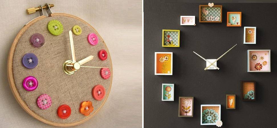 При неправильном положении часовой механизм может выйти из строя. Варианты в интерьере Оригинальные авторские часы из рамок с фотографиями. Они хорошо вписываются в небольшую уютную гостиную, не загромождая пространство. Современные кварцевые часы интересной формы будут отлично смотреться в помещении в стиле хай-тек, модерн или минимализм. Простую модель можно дополнить декоративными узорами на стене. Большие настенные часы могут быть отдельным арт-объектом в помещении.