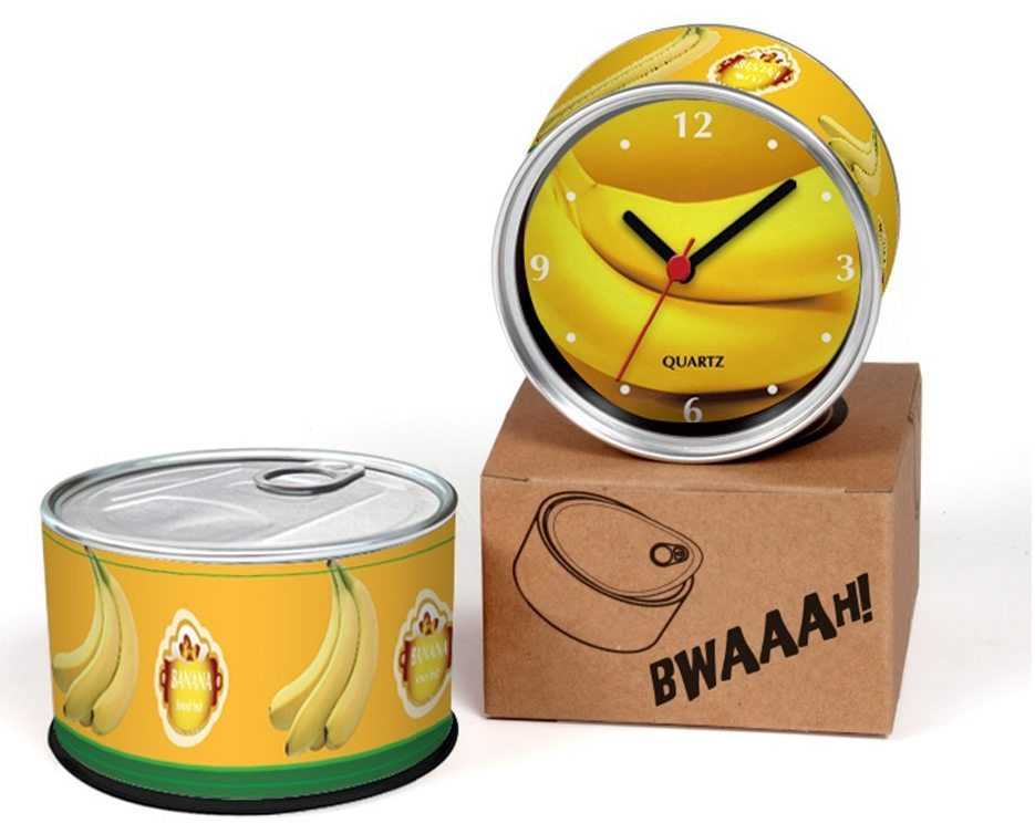 Небольшие часы из консервной банки смотрятся очень забавно.