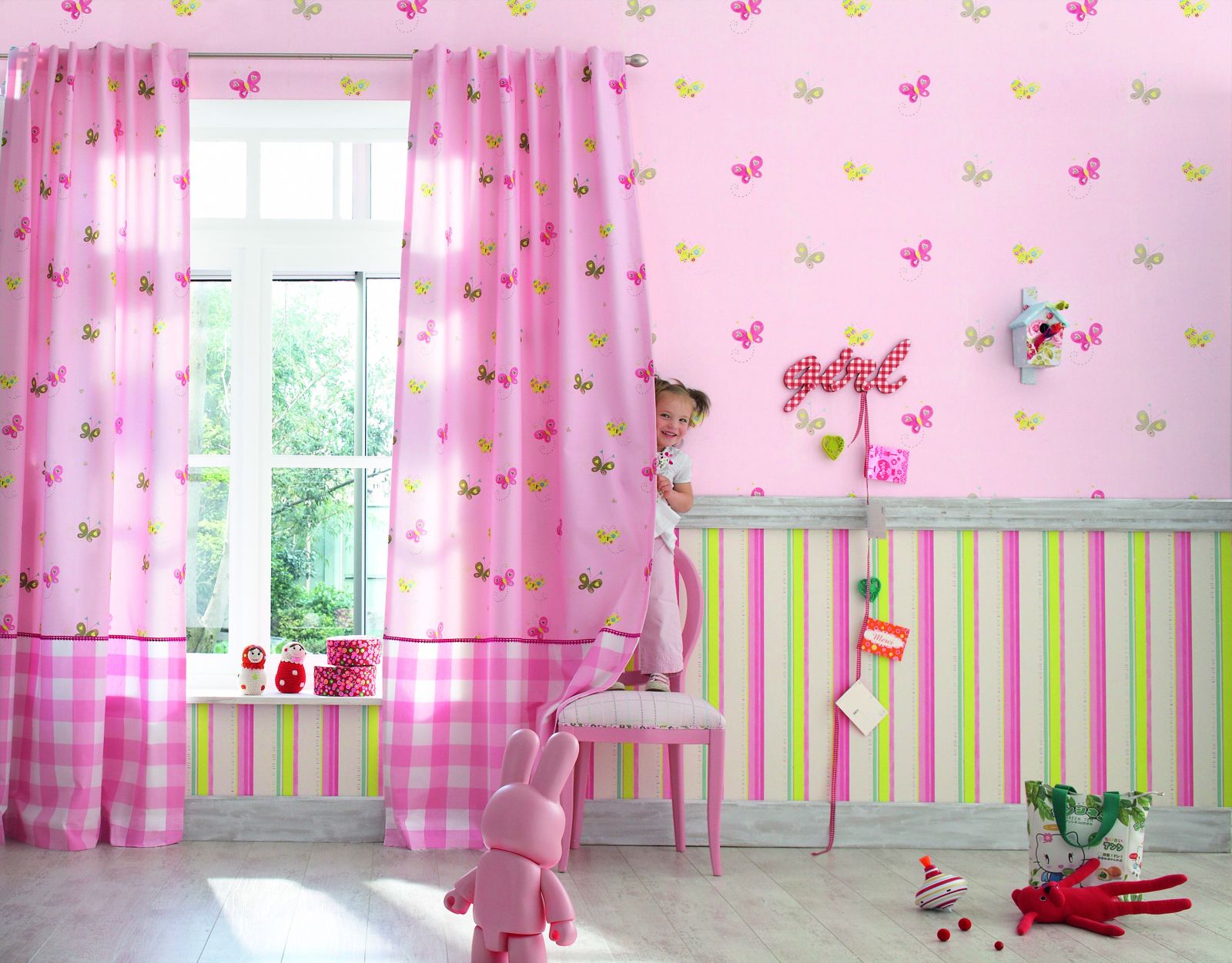 Окно в спальне визуально выделено бордюром нежной расцветки
