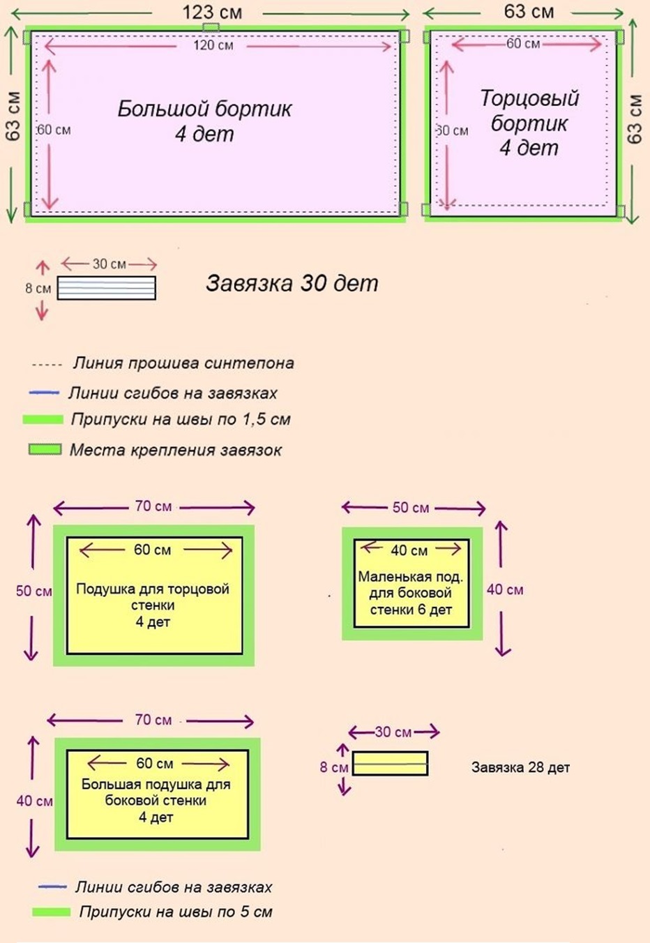 Как сшить бампер для детской кроватки: схема, размеры, выкройка
