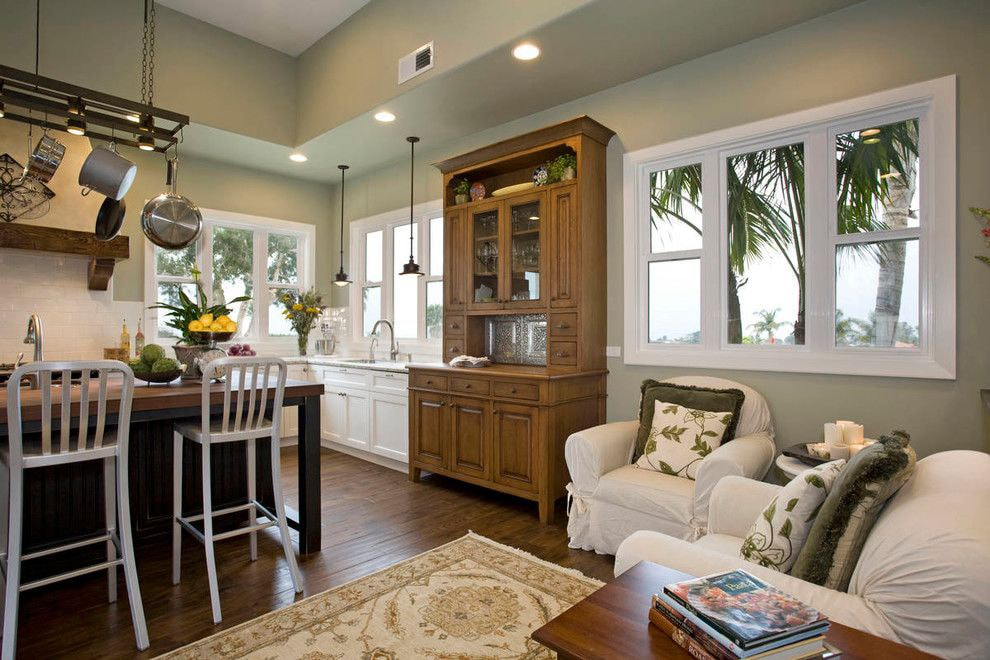 Классический. Чем дороже мебель, тем лучше — выбирайте натуральное дерево. Украшенный резными фасадами, золотыми фасками, другим декором буфет добавит благородства в общую картинку. Кантри. Здесь наоборот — минимум интересных декоративных элементов, максимум функциональности. Обилие ящиков, полок — идеальный практичный вариант для деревенского стиля. Прованс