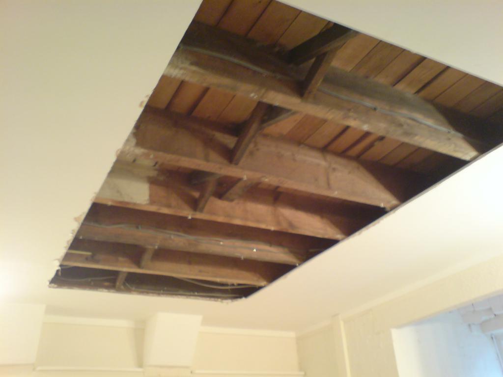Раньше дома из древесины строили в 1-2 этажа. Для создания перекрытия между этажами или крышей использовали деревянные балки. Сверху балки обшивали половой доской. Снизу потолок из балок оббивался рейкой и штукатурился. Такой вид отделки является недолговечным, так как потолок из древесины пригибается, вызывая появление трещин и разрушение штукатурки. Применение современных материалов позволяет создавать прочное и долговечное покрытие, отличающееся высокими эстетическими качествами. Для того, чтобы провести монтаж нового потолка, необходимо избавиться от старого покрытия и подготовить основание к работе.