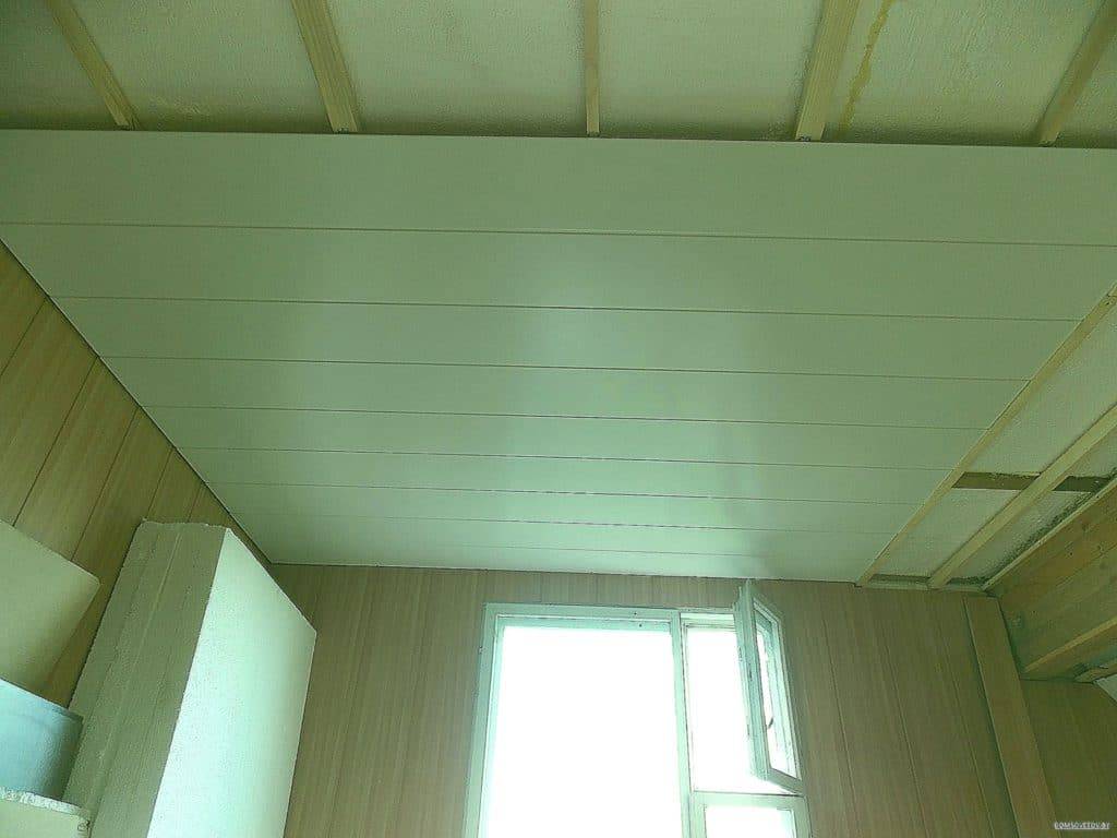 Пластик фиксируют на направляющие профили или при помощи саморезов непосредственно к балкам, но при условии, что они располагаются в одной плоскости и качественно выровнены. В случае необходимости подкорректировать высоту, снизу к брусу прикрепляют рейки, а к ним – панели.