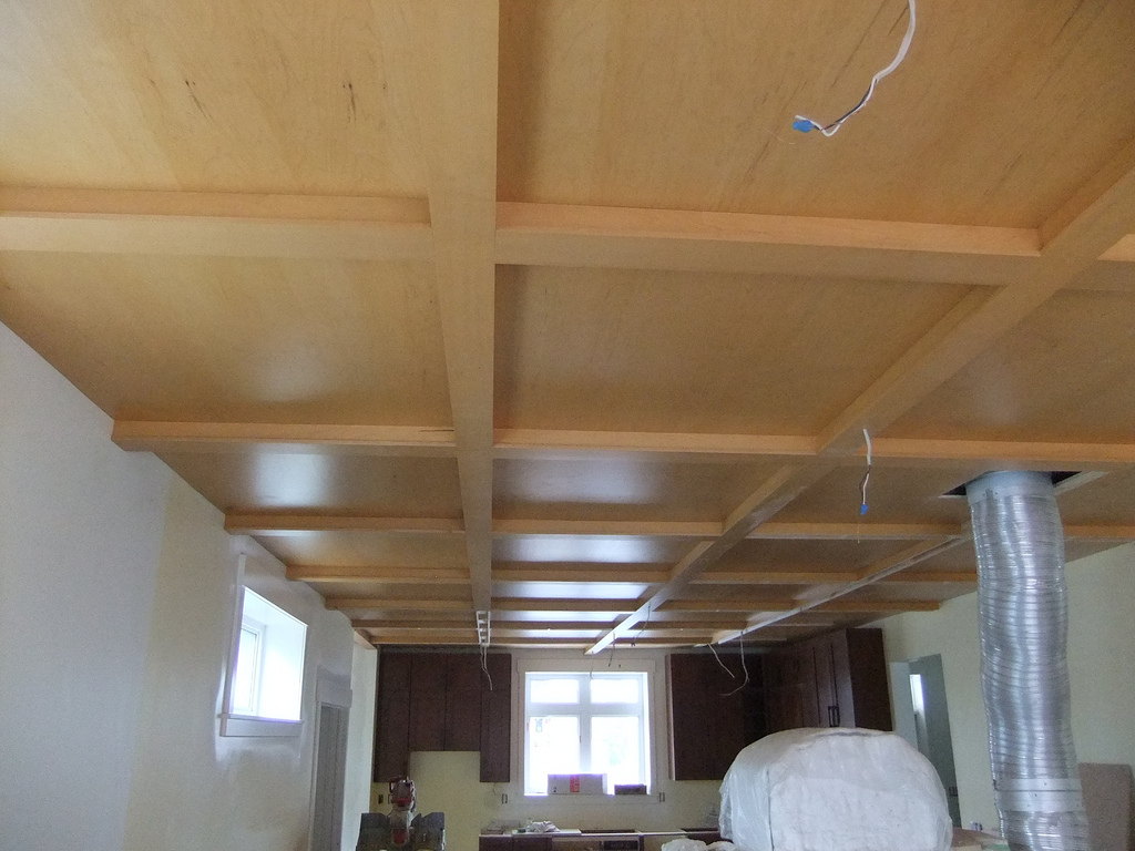 Фанера также относится к экологичным древесным материалам, так как содержит минимальное количество клея. Фанера — долговечный и прочный материал, выдерживает значительные нагрузки при небольшом весе. Как подшить потолок фанерой: листы крепят к балкам аналогично гипсокартону.