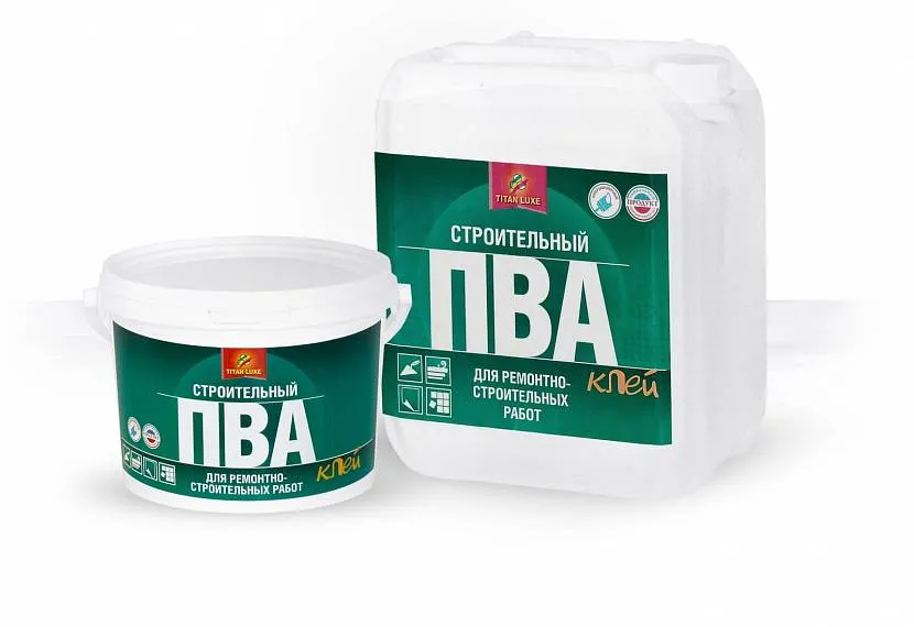 - ПВА: введение клея на основе поливинилацетата позволяет получить прочное декоративное, но не слишком влагостойкое покрытие, поэтому составы рекомендуется использовать лишь в сухих помещениях;