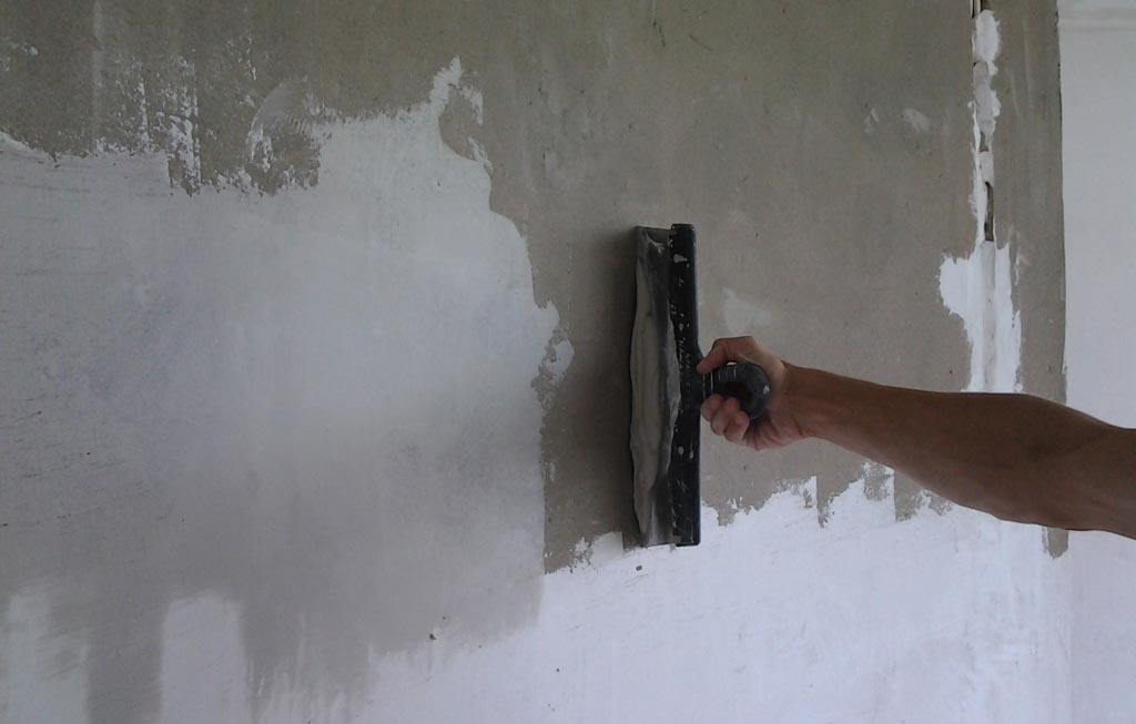 - нанести стартовую шпаклевку. Толщина ее слоя будет зависеть от того, под каким углом вы прикладываете шпатель к поверхности стены;