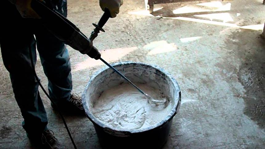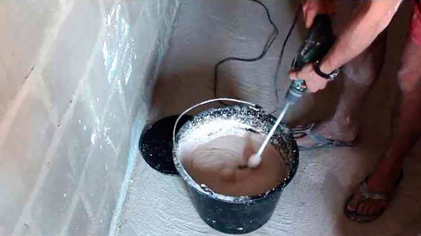 Механическим способом раствор замешивается специальной насадкой-миксером
