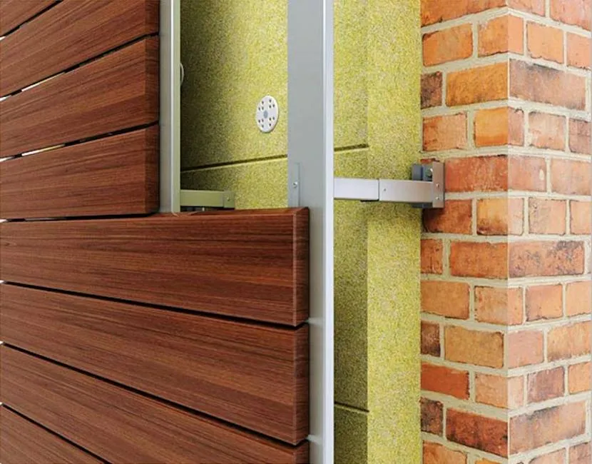 Основой вентсистемы является деревянный или металлический каркас. Система служит не только способом декорирования, но и выполняет другие функции (например, она способна скрывать дефекты фасадной стены). Под облицовочными панелями, как правило, укладывается утеплитель и остается достаточно пространства для свободной циркуляции воздуха и удаления излишней влаги. В целом конструкция уменьшает теплопроводность дома и защищает несущие стены.