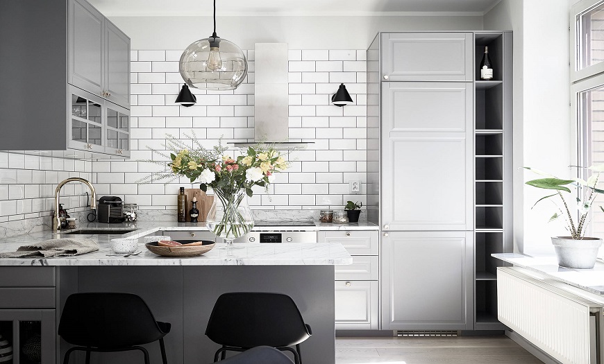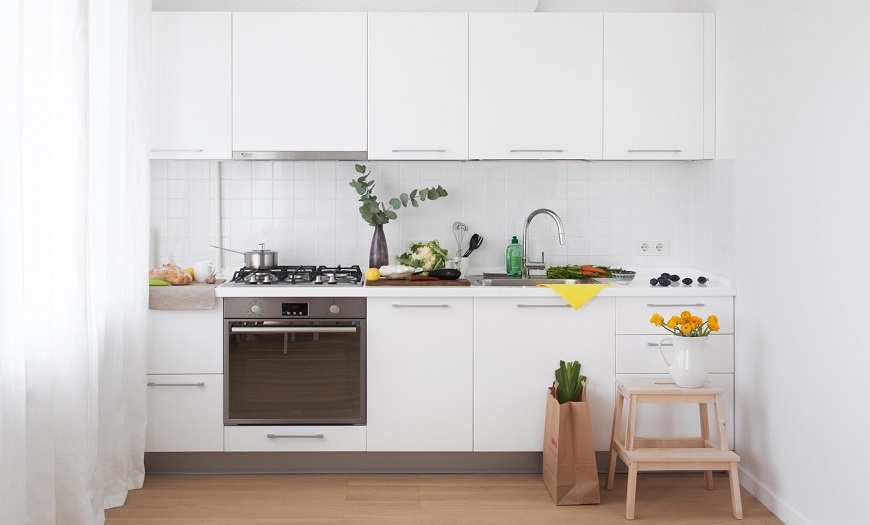Для небольшого помещения подходят светлые оттенки кухонь, которые делают кухню визуально просторнее. Достоинство светлых гарнитуров Икеа в том, что они не такие маркие, как мебель других производителей. Если белый цвет кажется вам слишком светлым, отличный вариант – серая кухня икеа в интерьере. Серый цвет универсален, он подходит к любому интерьеру.