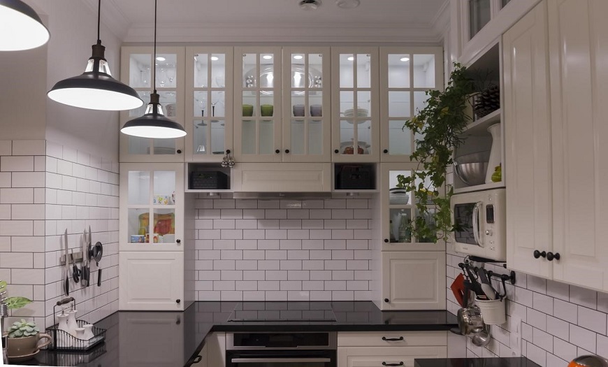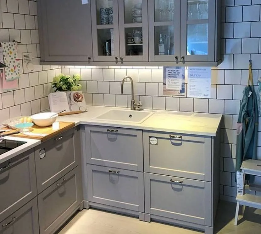 Планировка кухни ИКЕА Г-образной формы в интерьере
