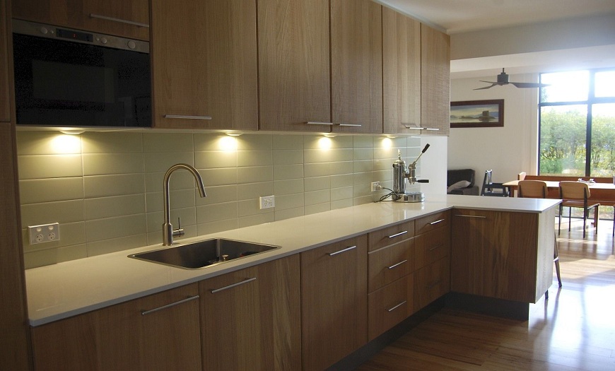 - столешница не вздувается в районе раковины и плиты, спокойно выдерживает воздействие влаги и температуры.