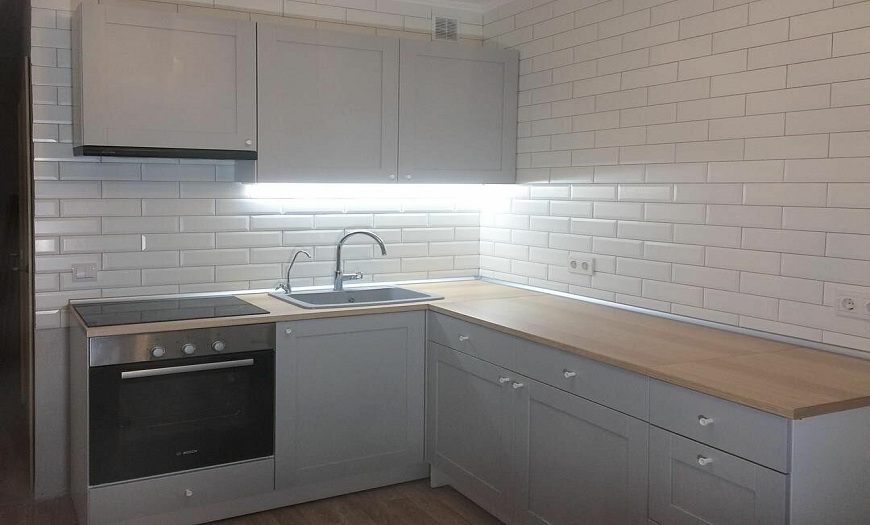 - основной недостаток кухонного гарнитура состоит в том, что он должен плотно соприкасаться с поверхностью стены. Любой зазор, может спровоцировать неправильное крепление отдельных деталей;