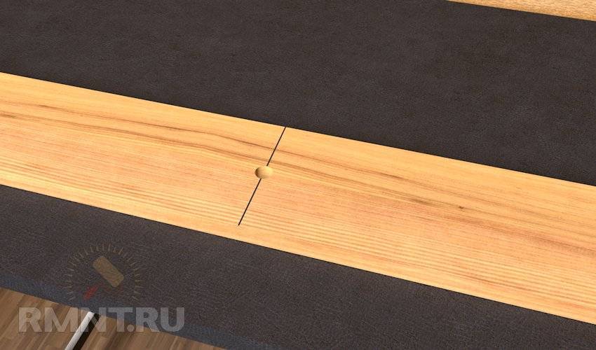 Длина секций отмечается на двух досках, используемых для изготовления тетивы. Отметки должны зеркально повторять друг друга, поэтому перед работой заготовки соединяют скотчем. В намеченных местах сверлятся отверстия под петли, после чего доски распиливаются. Для придания привлекательности все деревянные детали шлифуются и покрываются двумя слоями лака. Металлические петли перед монтажом своими руками покрывают грунтовкой и краской.