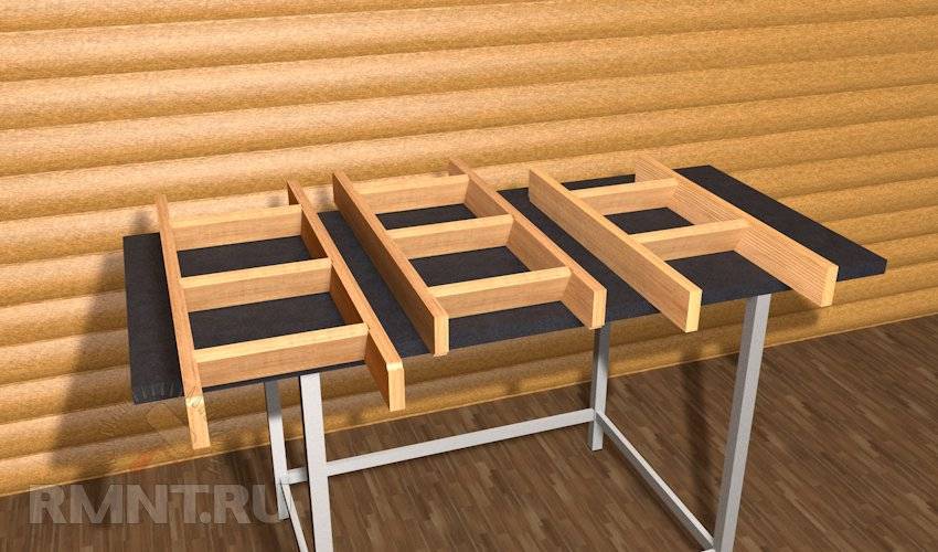 - деревянные рейки соединяются друг с другом, образуя прямоугольную или квадратную форму;