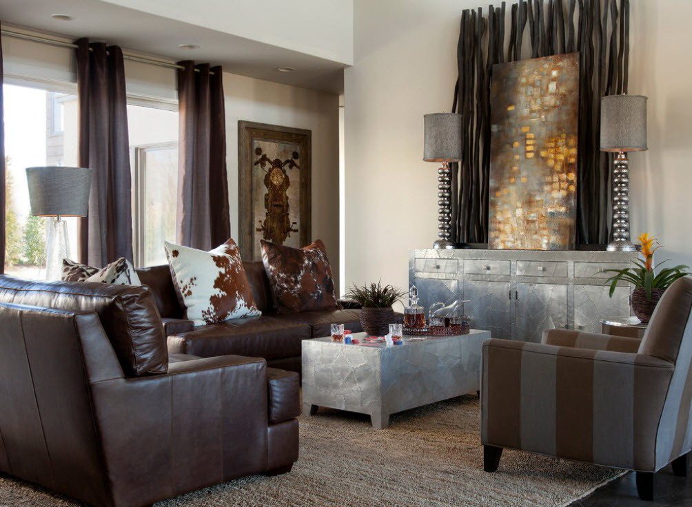 При составлении цветовой палитры в расположении гостиной вам необходимо знать, что коричневый цвет хорошо сочетается с пастелью и оттенками бежевого. Коричневый в комбинации с белым создает совершенный дуэт, который добавляет характер в интерьер. Бежевый в комбинации с бронзой согреют комнату, поэтому гостиная приобретет уютную атмосферу. В элегантной гостиной коричневый цвет также хорошо гармонирует с деталями из золота и серебра.