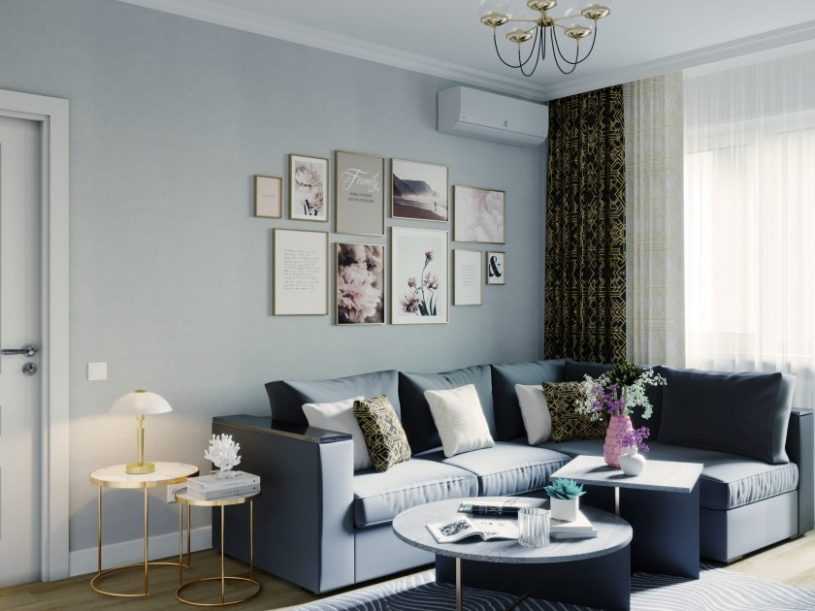 Модная идея преображения – использование градиентных оттенков. Тона разного уровня светлоты или темноты подходят для гостиной с окнами на северной стороне, низкими потолками. Комбинация разных текстур, добавление акцентов оттенков одного цвета смотрится необычно, но стильно.