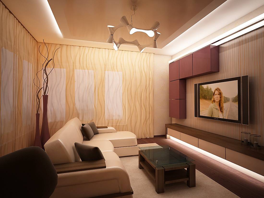 Чтобы сделать коричнево-бежевую гостиную более просторной, помогают некоторые простые приемы. Вы можете: