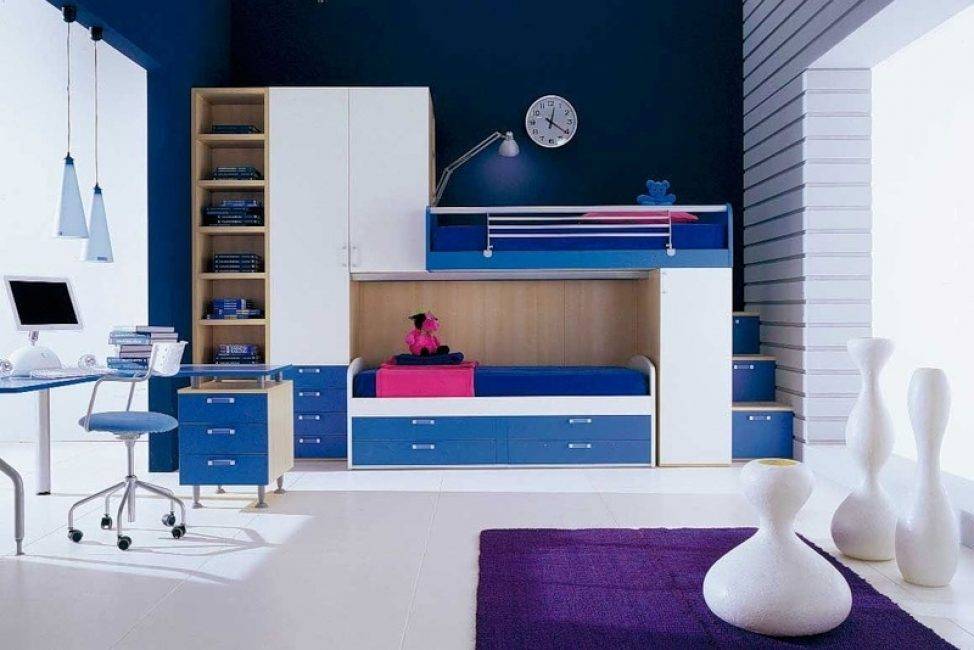 Если к мебели насыщенного синего цвета добавить обои белые, салатовые или небесно-голубые, интерьер получится прохладным.