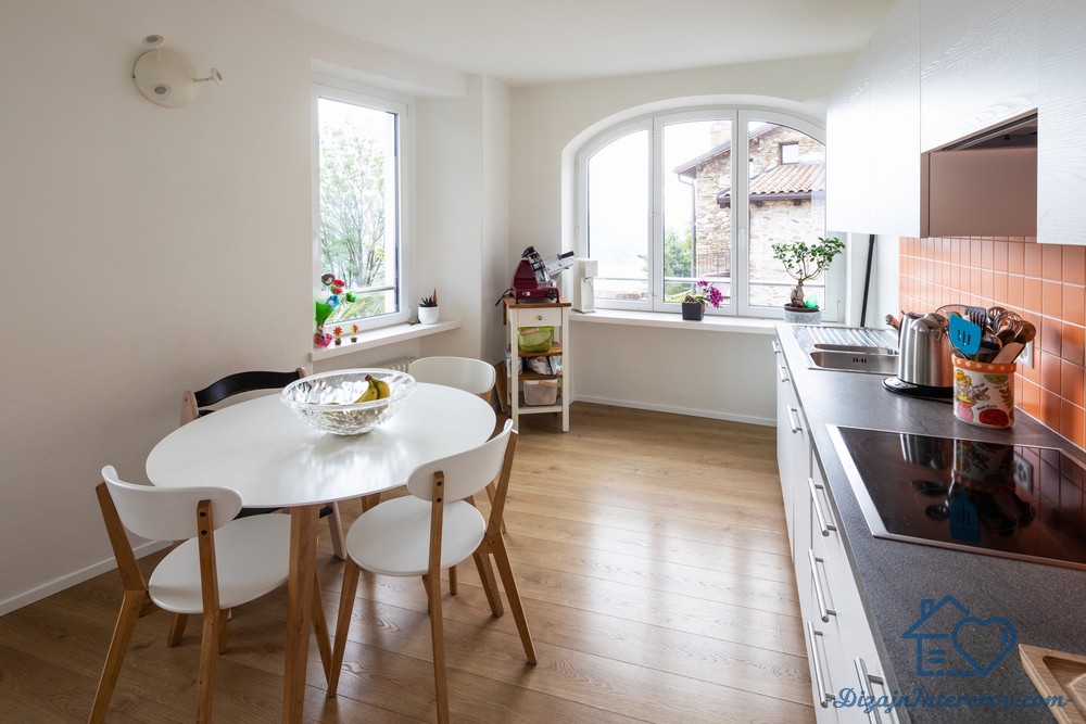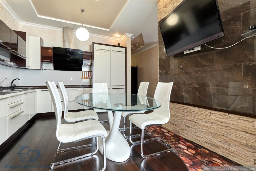 Белый цвет часто становится предметов выбора хозяек, которые хотят сделать интерьер кухни более изысканным и элегантным. Такое изделие добавляет в интерьер нотки свежести и визуально увеличивает пространство. Обеденная зона в белых тонах будет отлично сочетаться как со светлым, так и с темным гарнитуром.Зрительно улучшает и благоприятно воздействует на пространственное восприятие, наполняя его простором, свежестью и светом.