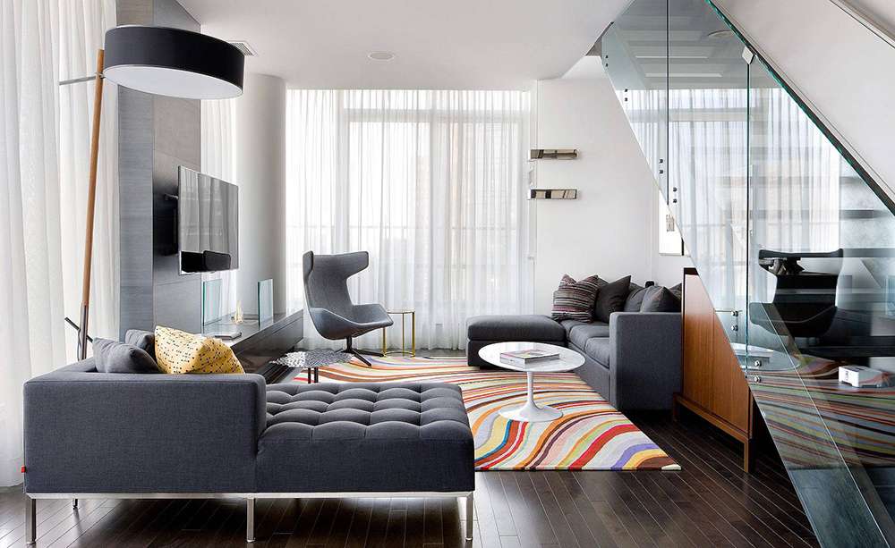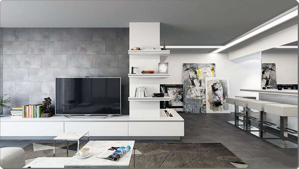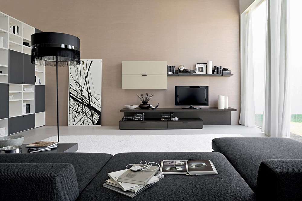 Лучше всего размещать ее на фоне нейтральных стен. Формирование темного контраста на базовом сером фоне станет эффектным приемом при организации зонирования с помощью мебели.