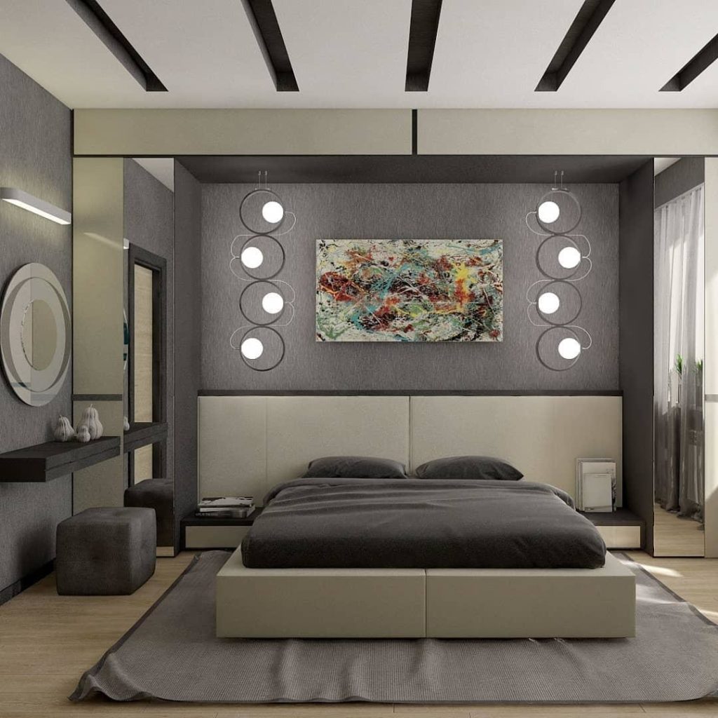 Современная спальня не приветствует монохром, поэтому серый здесь может быть одним из тонов в комбинации с другими цветами.