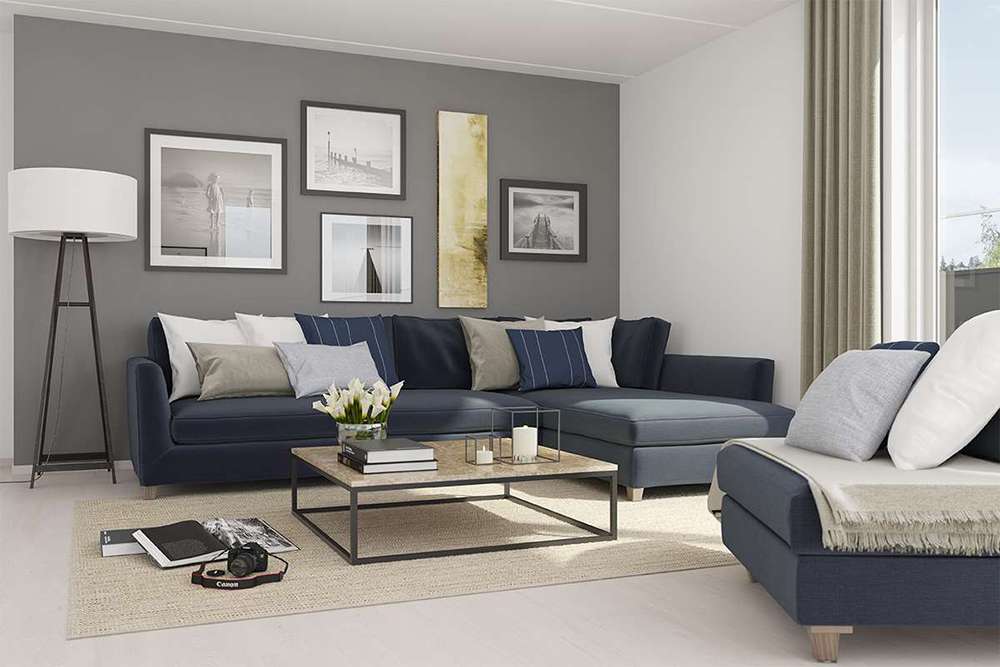 Глубокий синий цвет олицетворяет спокойствие и умиротворение, поэтому его стоит использовать для гостиной, но с осторожностью, поскольку переизбыток синего может сделать комнату мрачной и темной