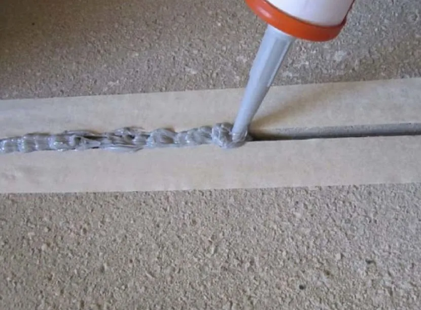 Для герметизации наружных швов применяют силиконовый, акриловый герметик или полисульфидная жидкая мастика. Прежде, чем начать герметизацию, нужно убрать пыль с поверхности, обезжирить ее, затем малярной лентой оклеить по периметру щели, которые нужно заделать.