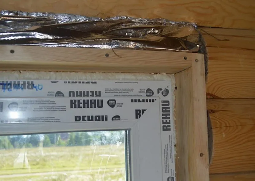 Монтаж и гидроизоляция для окон ПВХ в зданиях из древесины осуществляют после полной усадки. ПСУЛ на улице советуем приклеивать в проем до начала установки стеклоблоков. Материал после расширения полностью заполнит зазоры, не позволяя влаге поступать в помещение. На поверхность откосов со стороны комнаты приклеивают пароизоляционную ленту на основе фольги.