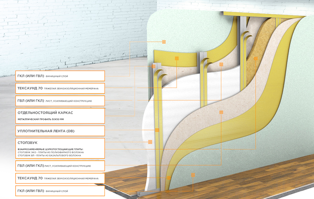 ЗИПС-III-Ультра | показывает наивысшую эффективность в соотношении толщина/результат, на базовом уровне защищает от бытовых источников шума, работает в диапазоне от 100 Гц | 5,5 см | 11-13 дБ |
