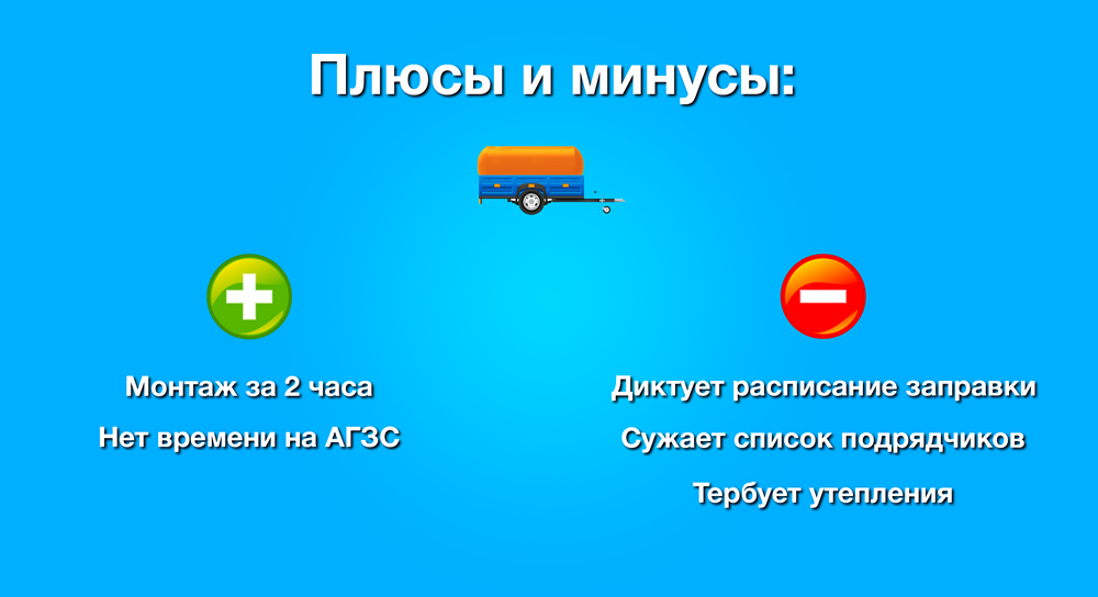 В итоге нужен большой газгольдер, чтобы заправлять малый. Это не шутка: многие договариваются с собственниками емкостей от 2 500 л, чтобы заправщики заезжали к их «малышам» по дороге.