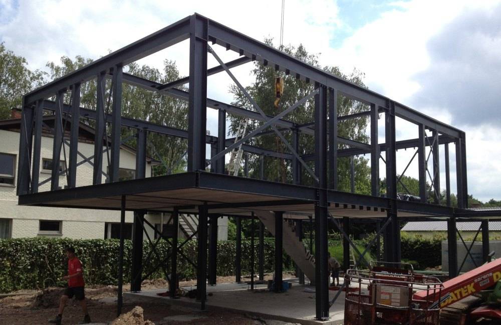 - Фахверковые металлоконструкции относительно легко устанавливать. Стальной каркас просто соединяется болтами между собой.