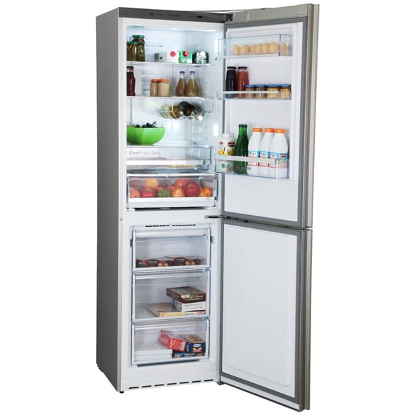 Двухкамерный, морозильный отсек снизу. Достаточно большая холодильная камера − 221 л, общий − 315 л. Выделена зона свежести со сниженной температурой, есть функции шоковой заморозки, индикатор закрытия дверцы, добавлен угольный фильтр. Температура контролируется посредством электронной регулировки. Встроена оптическая и звуковая сигнализация.