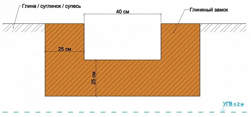 Правильно созданный глиняный замок надежно защитит от проникновения воды в подвальное помещение домаИсточник stroykarecept.ru