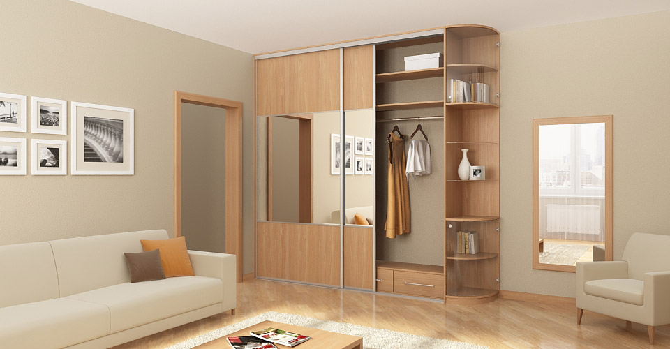 - Шкаф купе. Идеален для современного интерьера, не занимает много места.