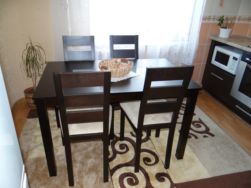 Стулья цвета венге – это отличное решение для помещения с интерьером, выдержанном в классической стилистике. Материалом изготовления может служить массив древесины и более доступные по стоимости МДФ и ДСП. В цвете африканского палисандра могут быть выполнены не только стулья, но и обеденный стол. Такой комплект отлично дополнит гарнитур в аналогичной гамме. Чтобы помещение не казалось мрачным, потолок и стеновые поверхности оформляют в светлых тонах.